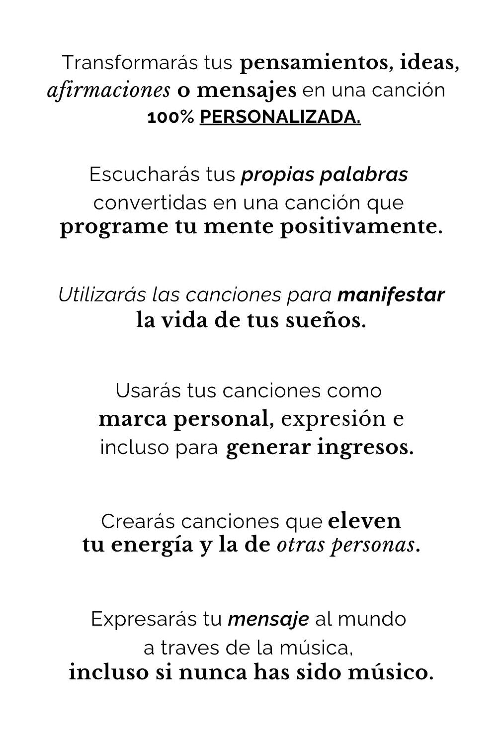 Vas a aprender cómo transformar tus pensamientos, afirmaciones y mensajes en canciones reales utilizando inteligencia artificial.